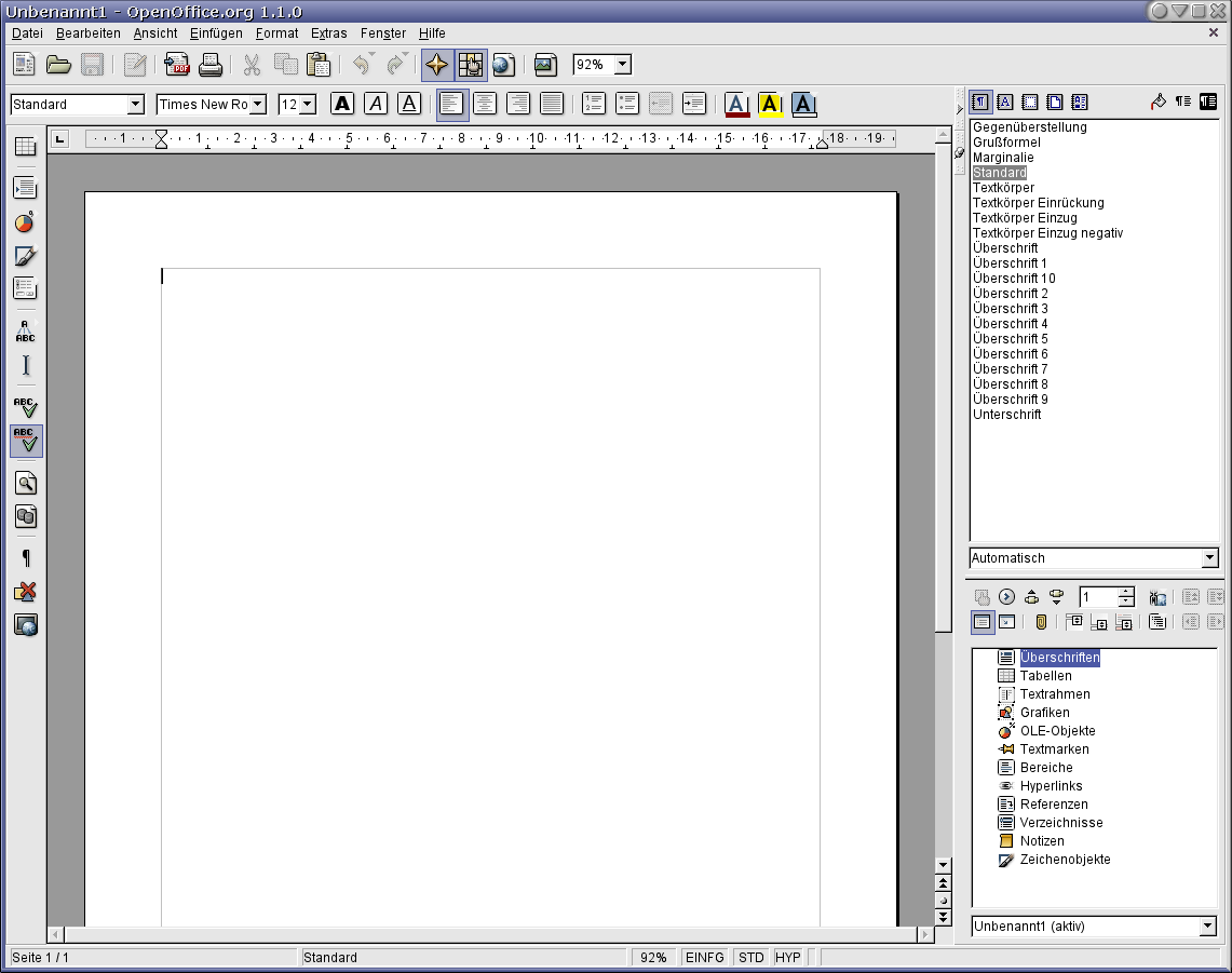 Vergleich OpenOffice.org 1.0 mit Microsoft Office 2002 (englisch).